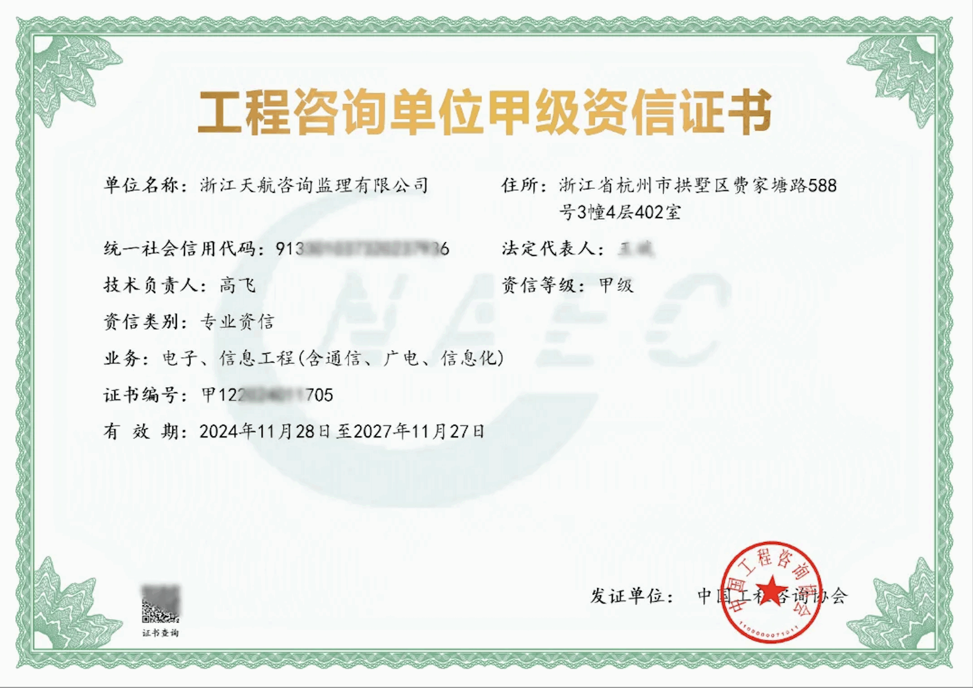 2023年獲得工程監理資質(機電安裝乙級、通信乙級)